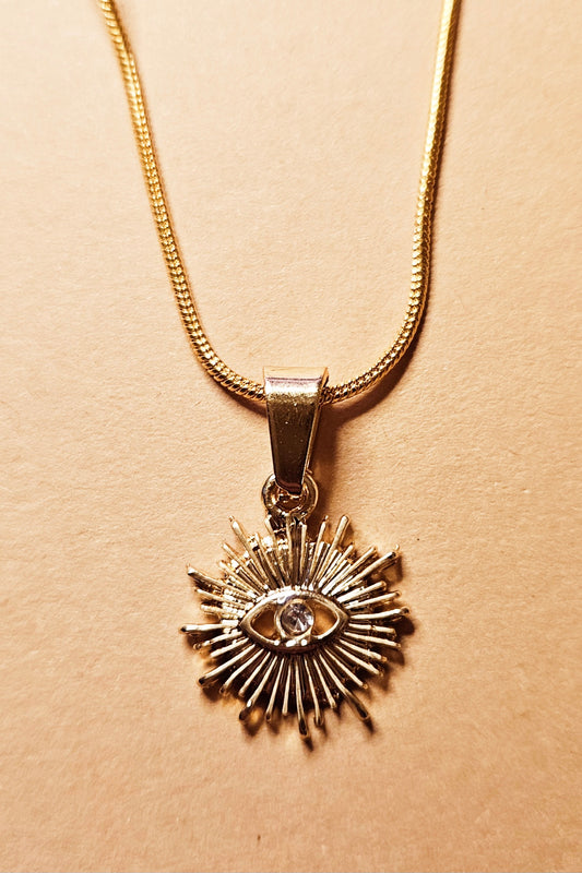 Evil Eye Necklace - 18K Gold Protection Pendant on 20 inch 14k Gold Plated Chain
