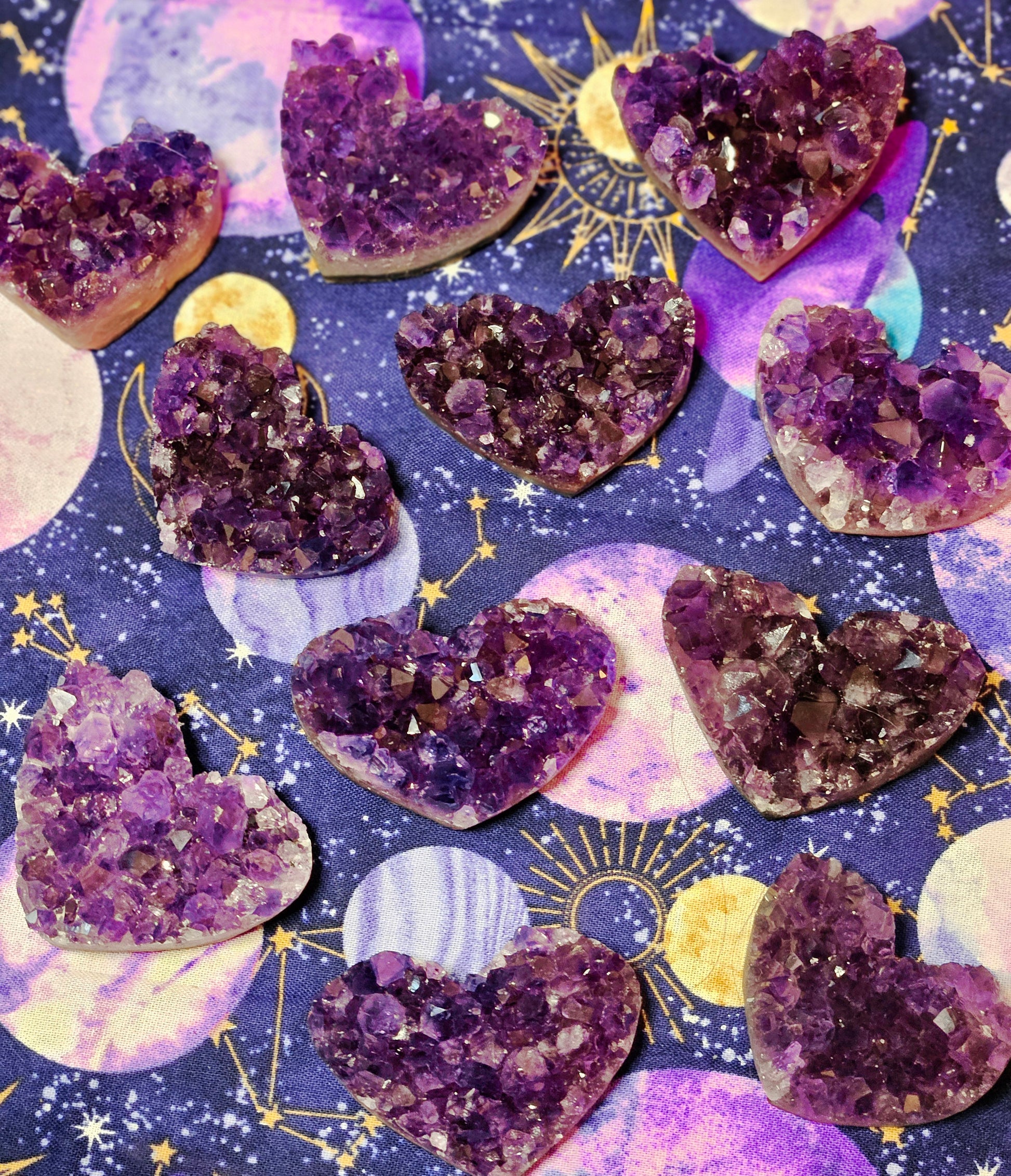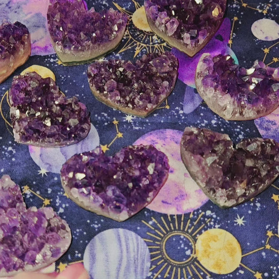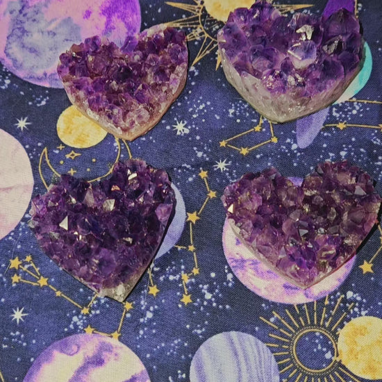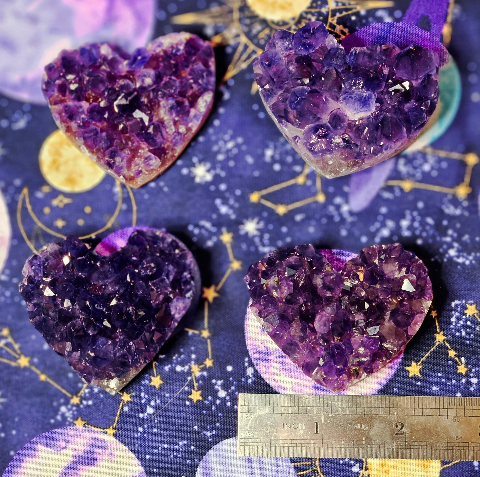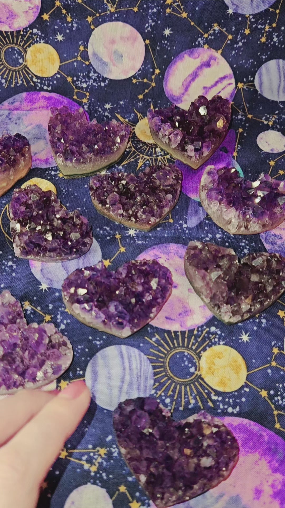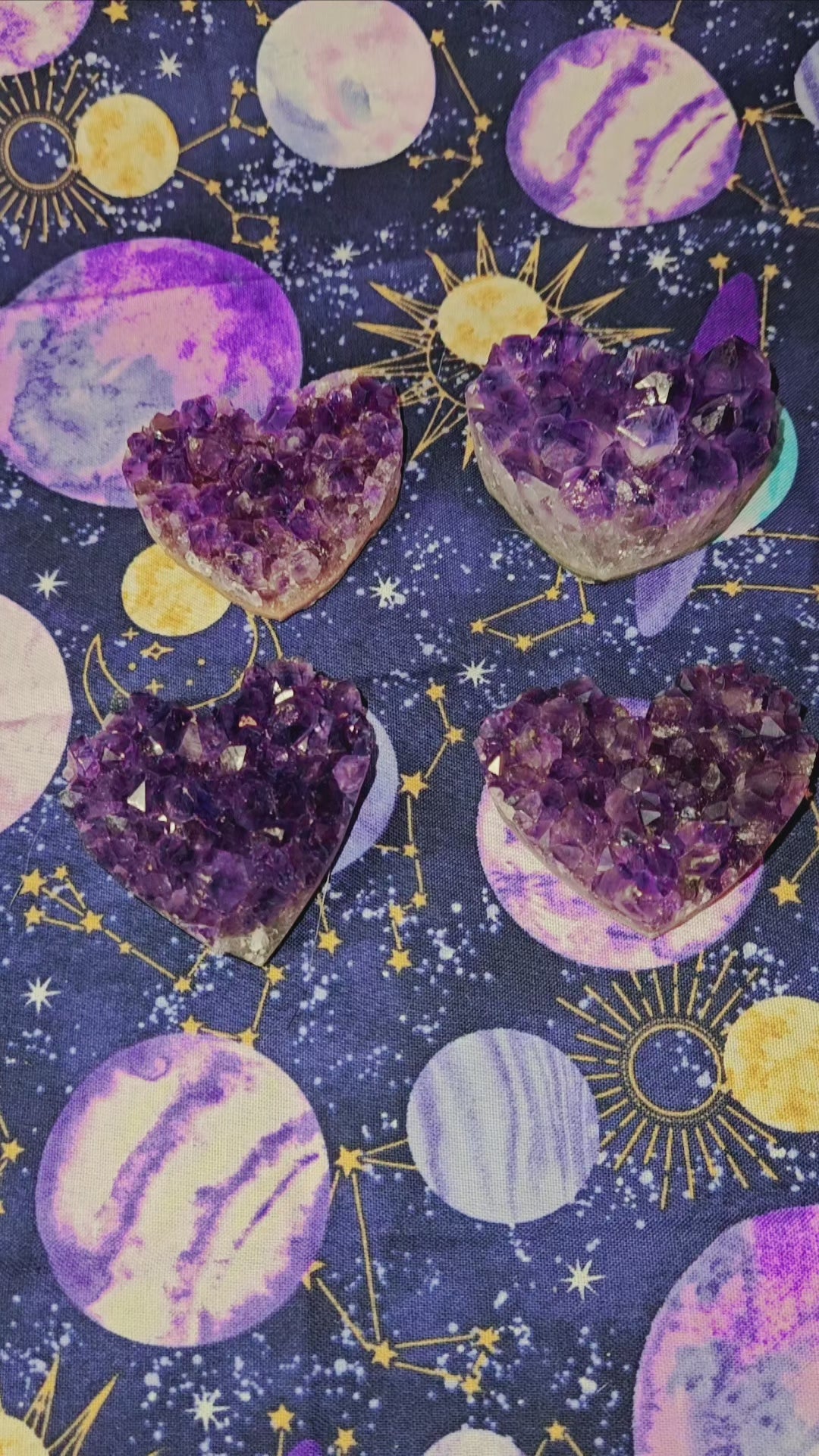 These Brazil amethyst heart clusters add serene beauty to any space.