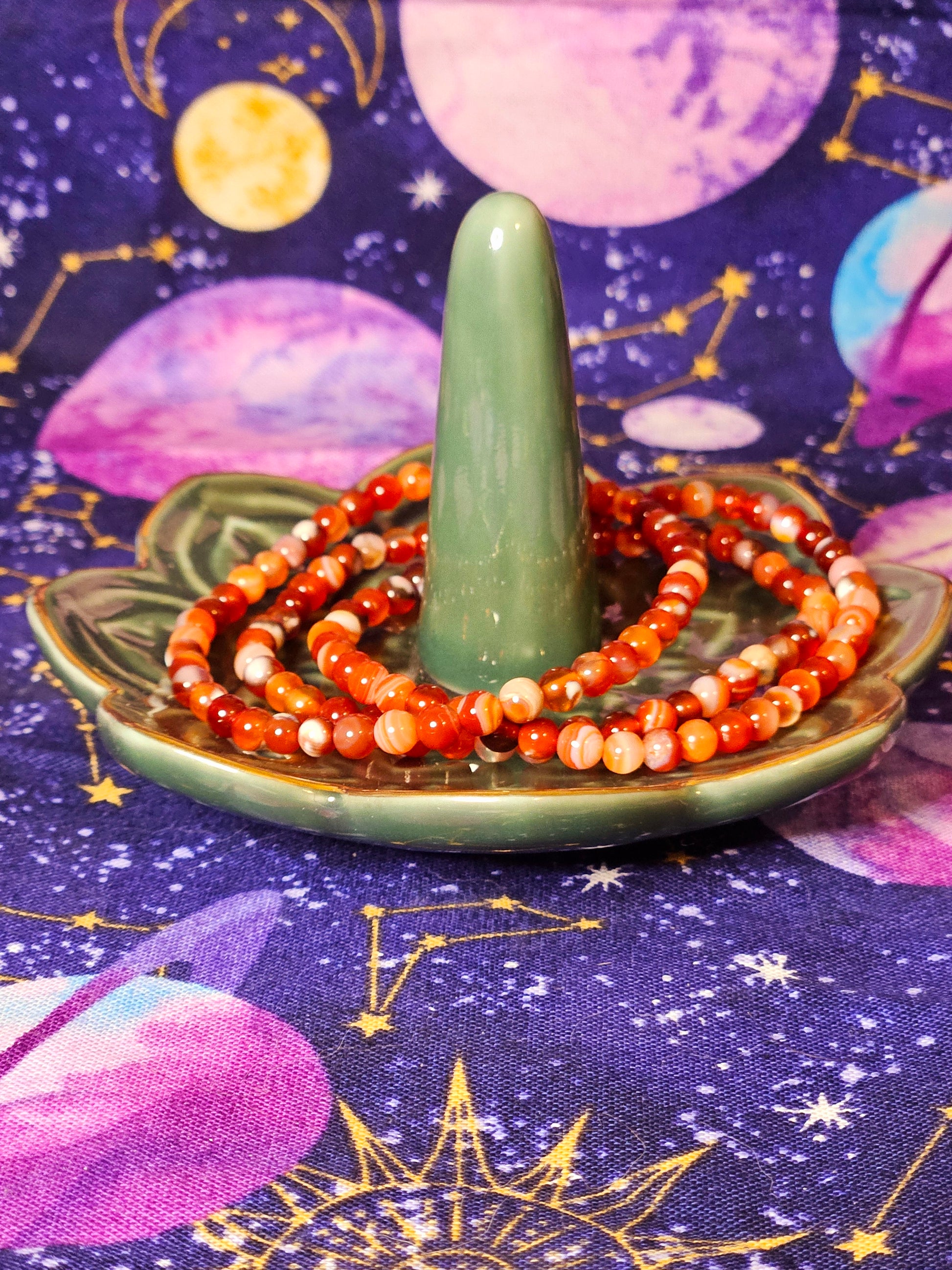 This small bead carnelian bracelet is not only gorgeous, it is a protective stone that promotes clarity, concentration, and creativity. Associated with the lower chakras, it is great for grounding energy and igniting passions.