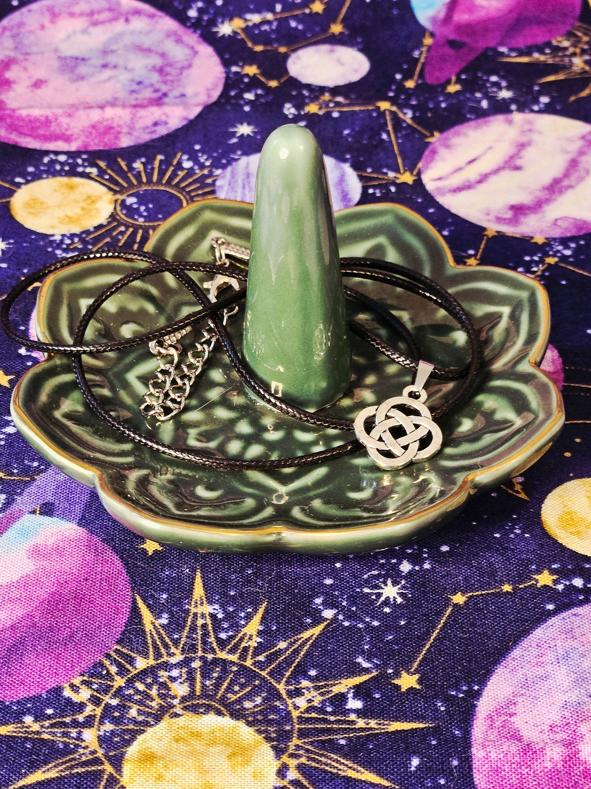It is primarily meant to be used to invoke protection against evil spirits, illness, and misfortune, making it a talisman of strength and safety. For these reasons, it has was often adorned on shields or flags on the battlefield. The knot was used in Celtic, Norse, and Viking traditions and still remains popular in modern art, jewelry, and tattoo imagery.