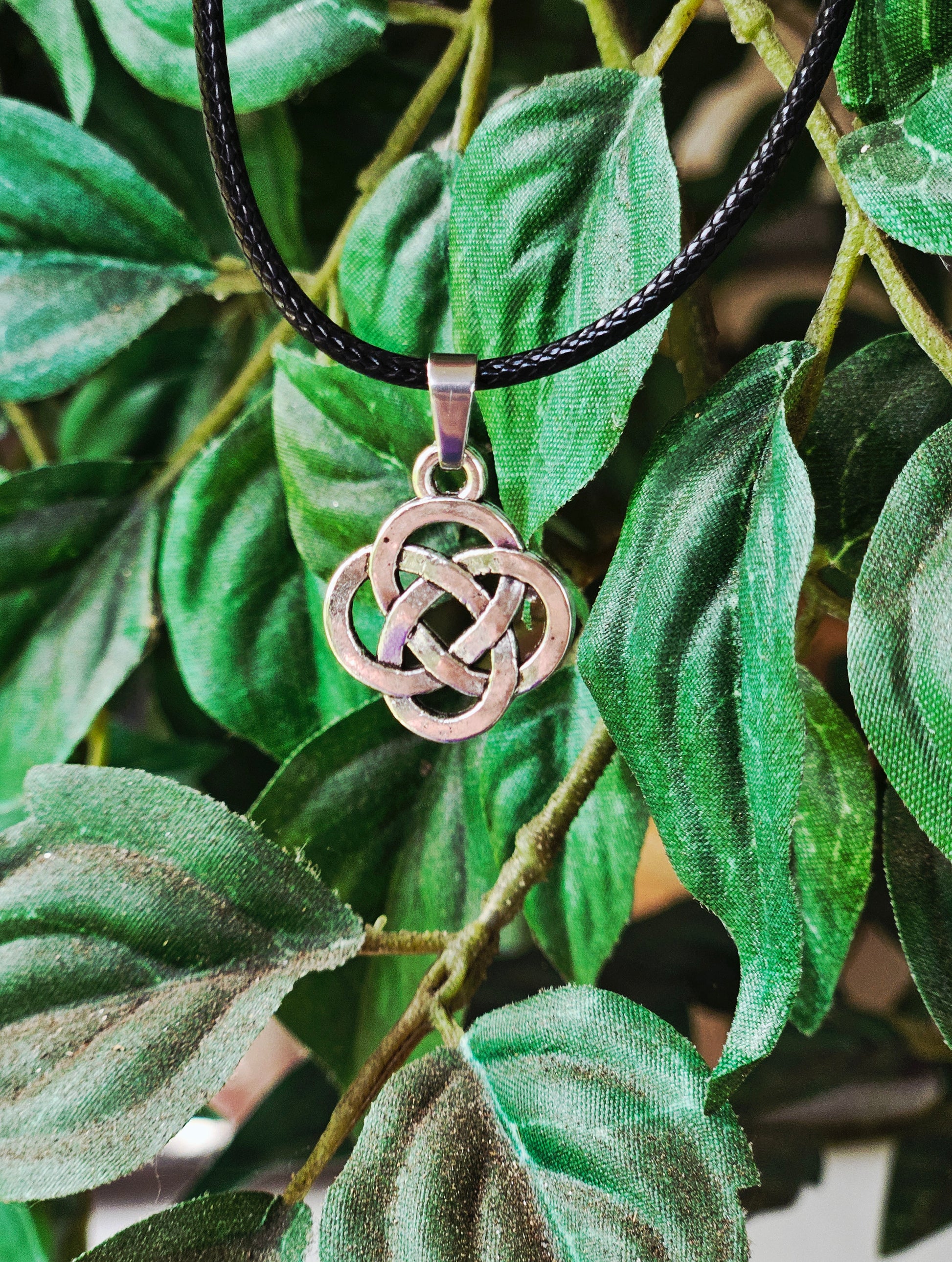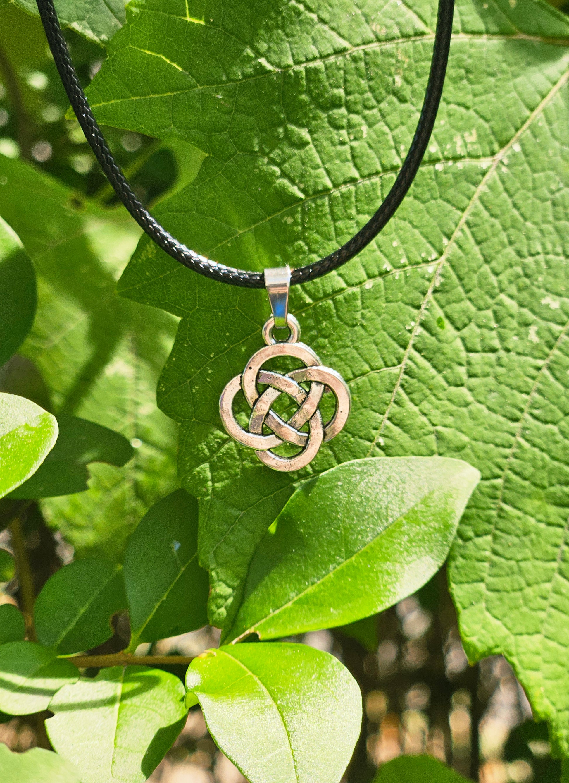 Celtic Shield Knot Protection on Black Leather Necklace Chord