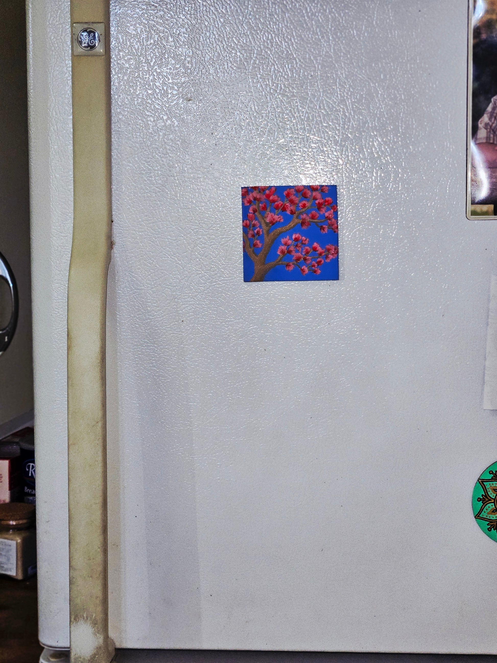 Hand painted magnets are a great way to add some art and soul to your home without needing to have a large open space or put any holes in the wall. Place this in your kitchen, on the side of a metal desk or bookcase, or up on any magnetic surface so you can enjoy spring in New England no matter where you live or what time of year it is.