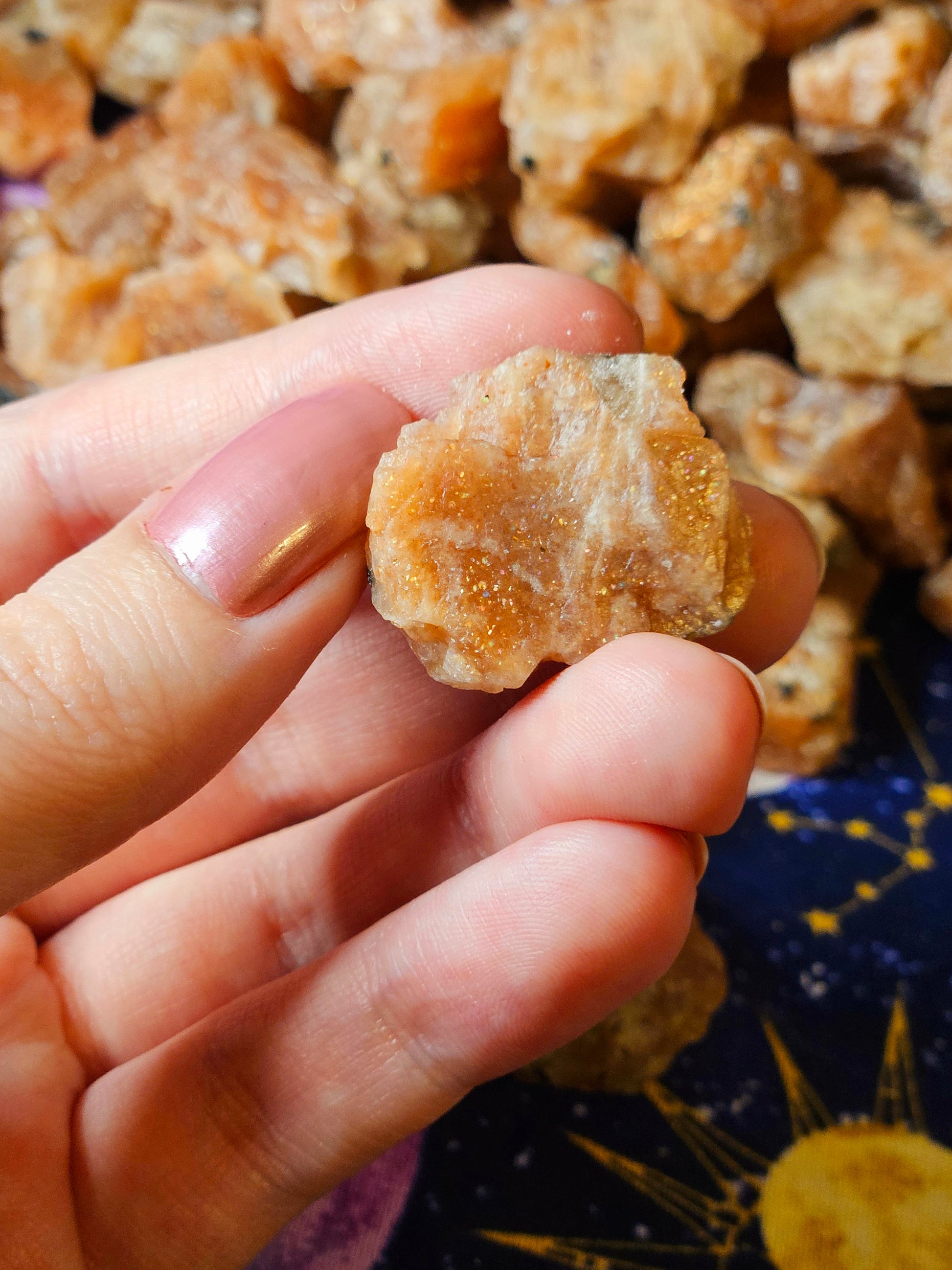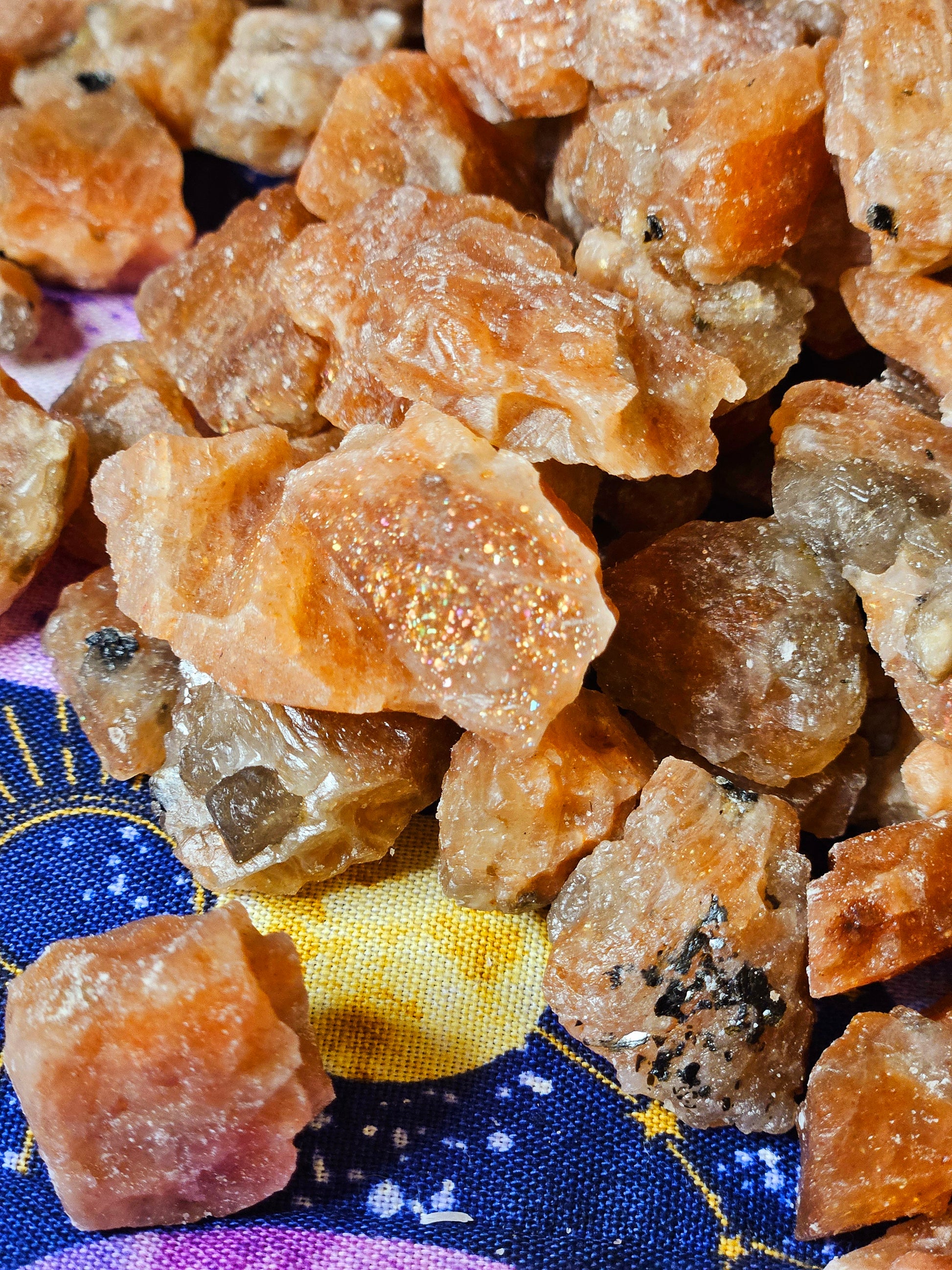 These high quality pieces of raw Sunstone have stunning specks of glitter that shimmer in the light. Sunstone is great for inviting in joy, openess, warmth, and abundance.