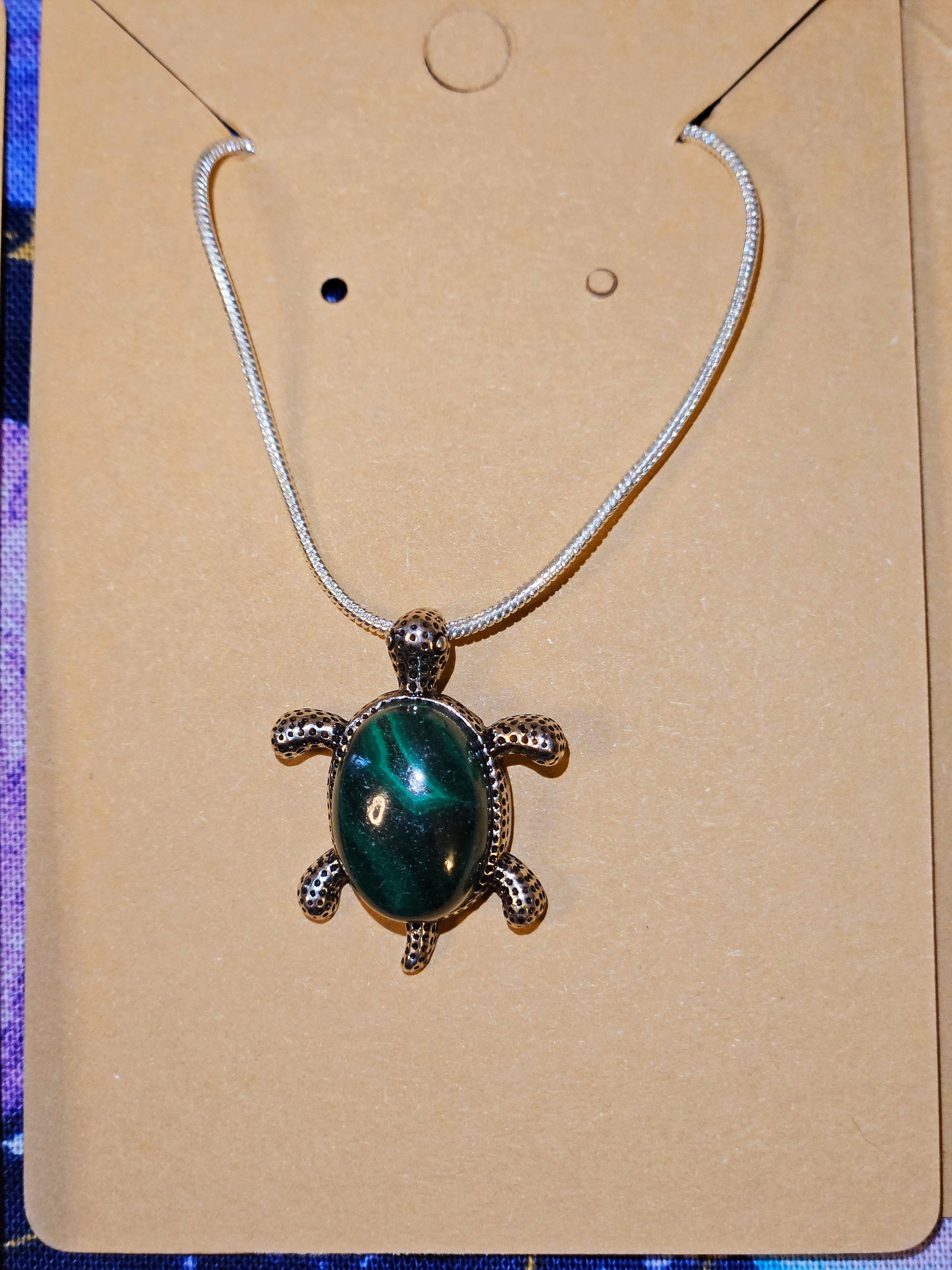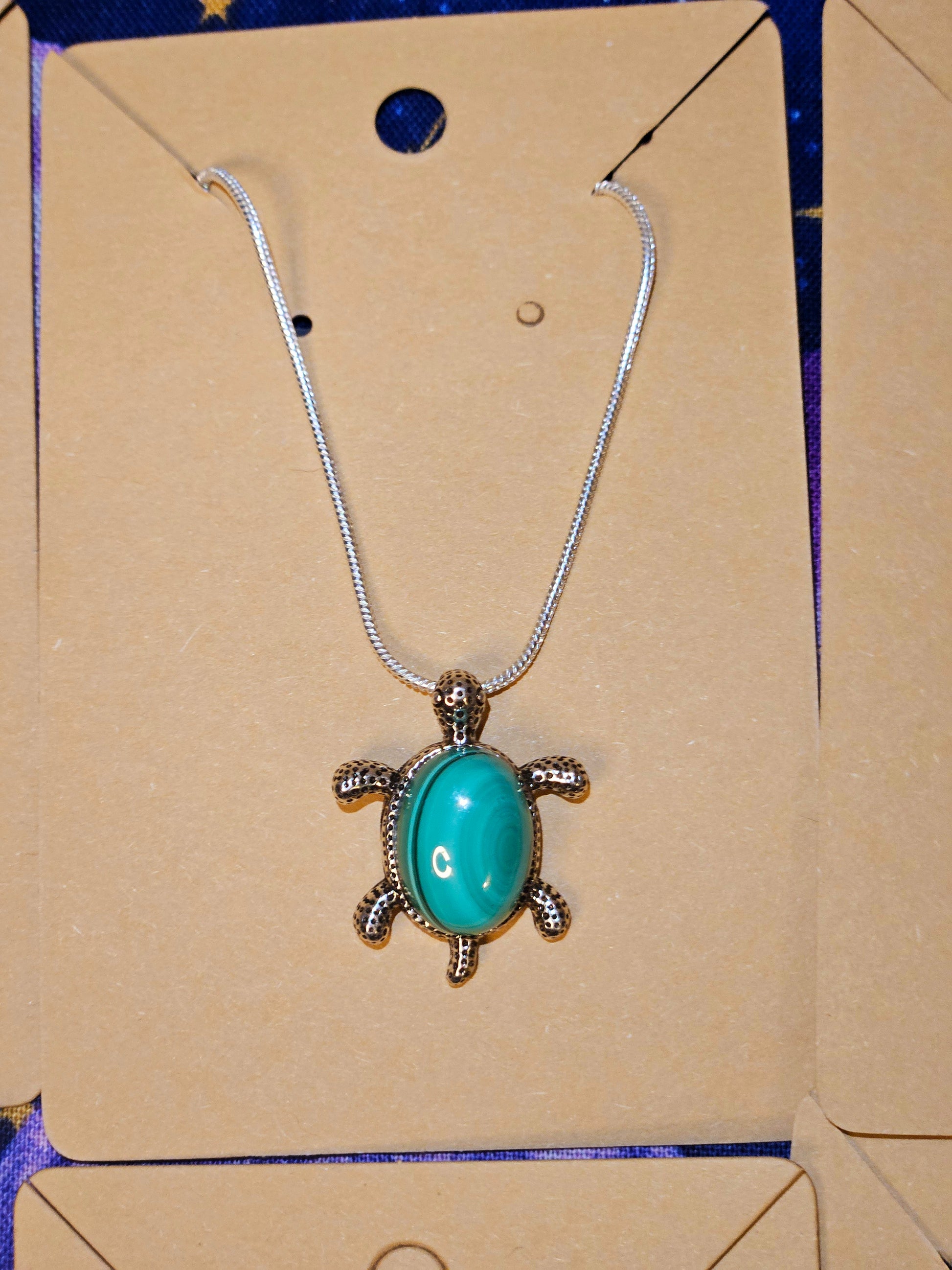 These cute little turtles are set with an oval shaped malachite stone as their shell! Associated with the heart chakra, Malachite is a powerful, protective stone that helps with healing and transformation. It is believed to amplify energy, encourage personal growth, and help release negative emotions and patterns.