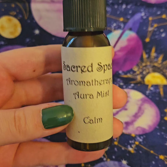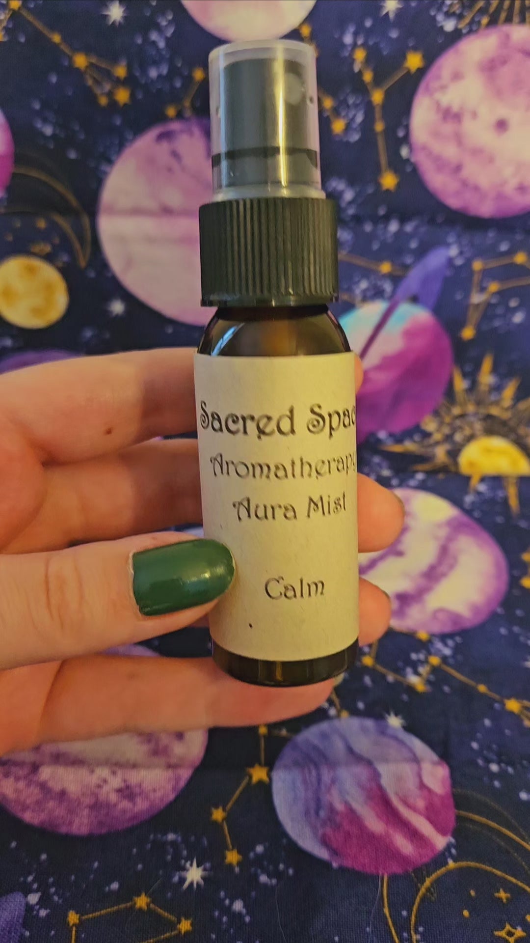 The "Calm" Aromatherapy Aura Mist is a custom blend of lavender, ylang-ylang, and chamomile essential oil helps to calm any chaotic energy affecting you or your Sacred space. These oils have all been shown to reduce feelings of anxiety and aid relaxation.